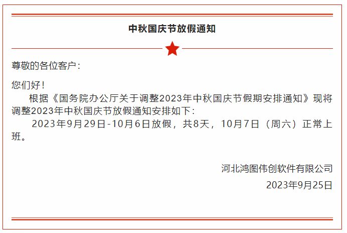【假期】2023年鴻圖偉創(chuàng)中秋國慶節(jié)放假及值班安排