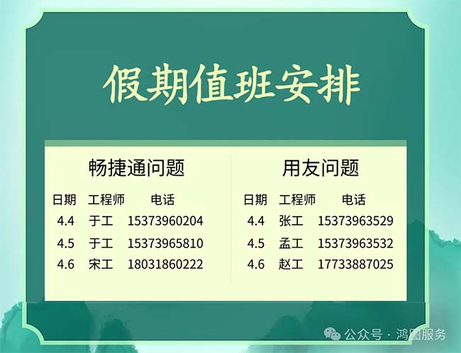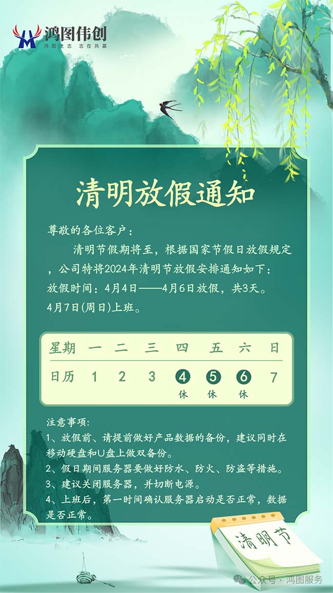 【假期】2024年鴻圖偉創(chuàng)-用友軟件清明節(jié)放假及值班安排