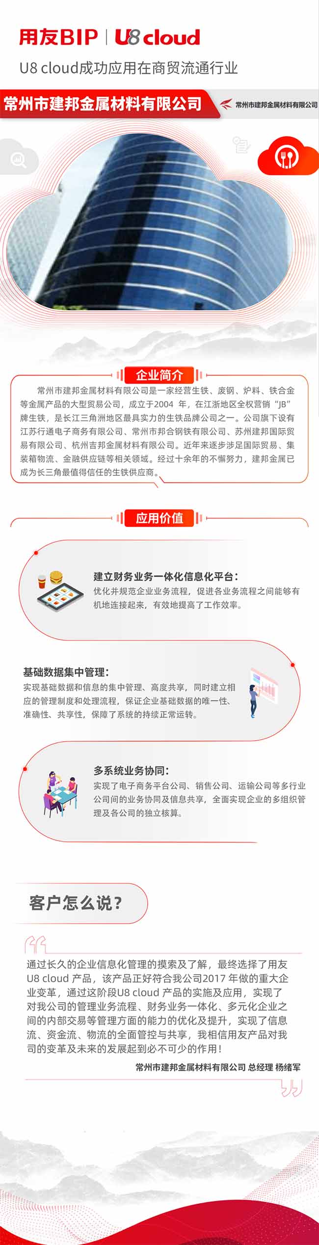 用友U8 cloud助力建邦金屬企業(yè)全面信息化集中管控