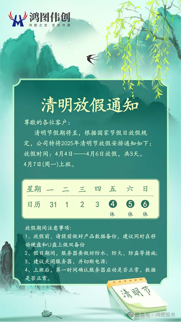 【假期】2025年鴻圖偉創(chuàng)清明節(jié)放假及值班安排
