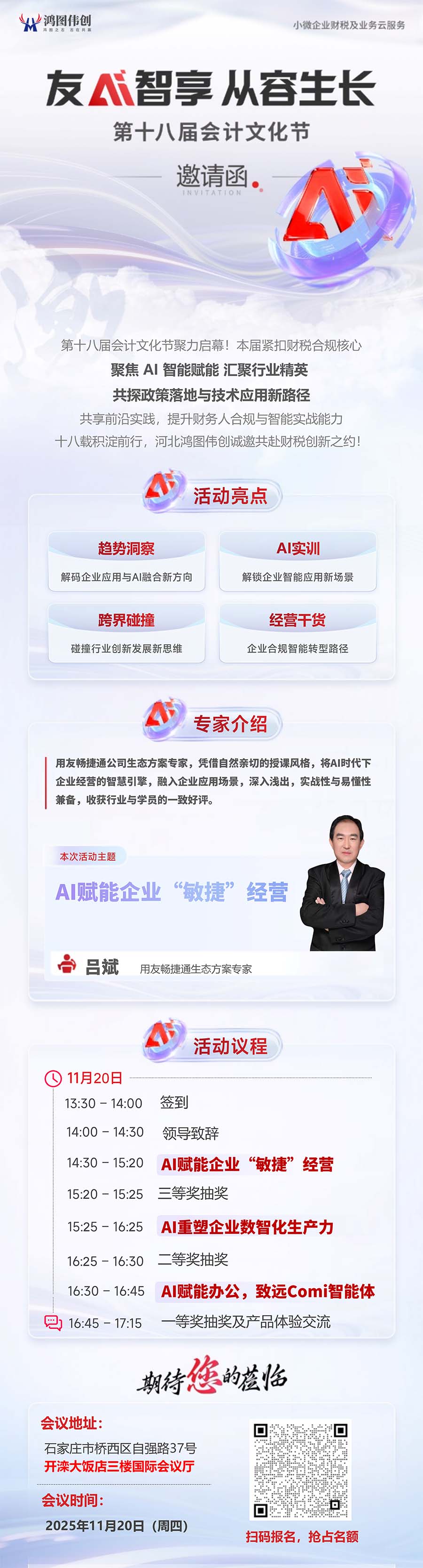 時(shí)間:2025-11-15 10:10:07新聞來源:石家莊用友軟件瀏覽量:
