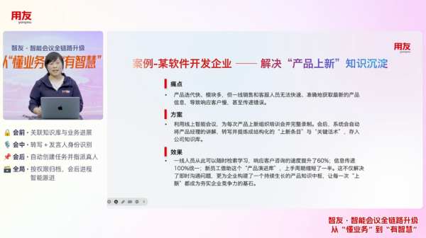 “過去,只有線上會議能被數(shù)字化;現(xiàn)在,所有會議都是智能會議。”用友智能會議應(yīng)用架構(gòu)師袁婧在發(fā)布會上強調(diào),“我們實現(xiàn)了‘全域’覆蓋——讓智慧無處不在。”