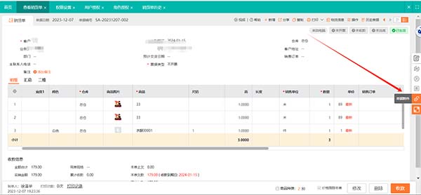 1、新增銷貨單時(shí),點(diǎn)擊右側(cè)的回形針【】圖標(biāo),把需要上傳的單據(jù)進(jìn)行上傳。