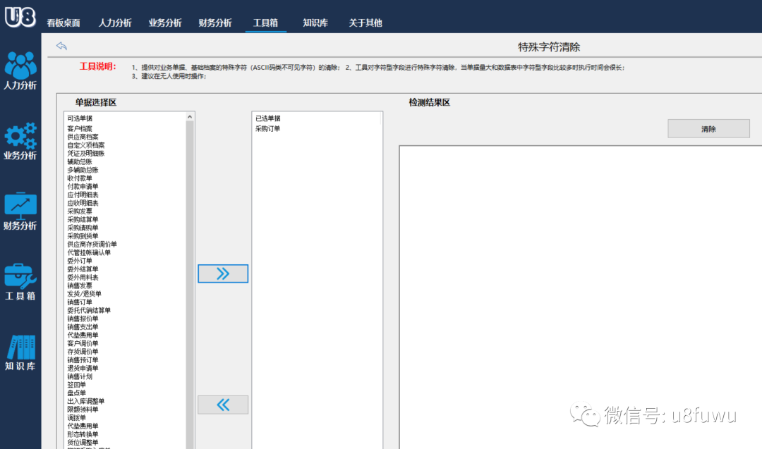 1、提供對業(yè)務(wù)單據(jù)、基礎(chǔ)檔案的特殊字符(ASCII碼類不可見字符)的清除;