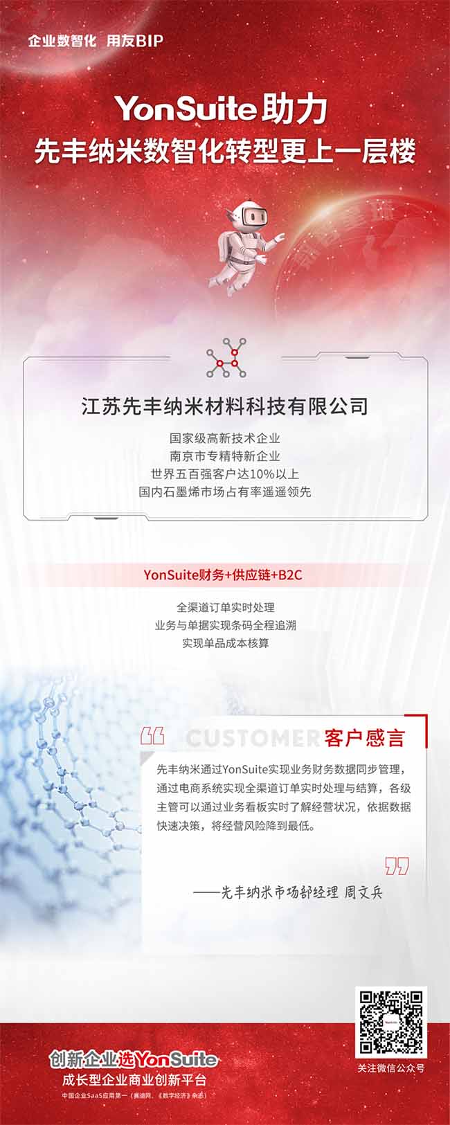 江蘇先豐納米是國家級高新技術(shù)企業(yè),有自己的銷售平臺和渠道。用友YonSuite接收多方平臺傳入的數(shù)據(jù)生成銷售訂單,進(jìn)行安排生產(chǎn)入庫、發(fā)貨、出庫、開票、收款等全流程處理,集業(yè)財(cái)一體化、產(chǎn)供銷一體化的平臺優(yōu)勢助力先豐納米數(shù)智化轉(zhuǎn)型更上一層樓。