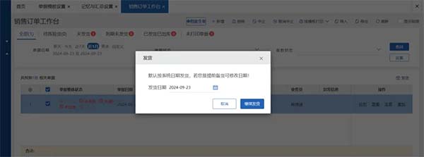 【產(chǎn)品解決方案】銷售管理-銷售訂單工作臺(tái)對(duì)單據(jù)進(jìn)行發(fā)貨時(shí)可支持選擇發(fā)貨日期