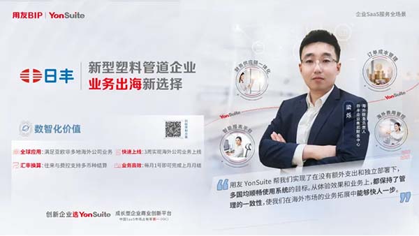 日豐集團(tuán)自1996年成立以來(lái),在管道產(chǎn)品領(lǐng)域深耕二十余載,為億萬(wàn)家庭提供全屋管道系統(tǒng)解決方案。隨著品牌走向國(guó)際,其在海外業(yè)務(wù)運(yùn)營(yíng)協(xié)同和管理上面臨諸多挑戰(zhàn)。在此背景下,日豐選擇用友YonSuite作為海外拓展的數(shù)智化伙伴,取得了顯著成效:實(shí)現(xiàn)了更高效管理,極大提升了財(cái)務(wù)的工作效率和全球的協(xié)同效率,有力推動(dòng)企業(yè)在全球業(yè)務(wù)的拓展。