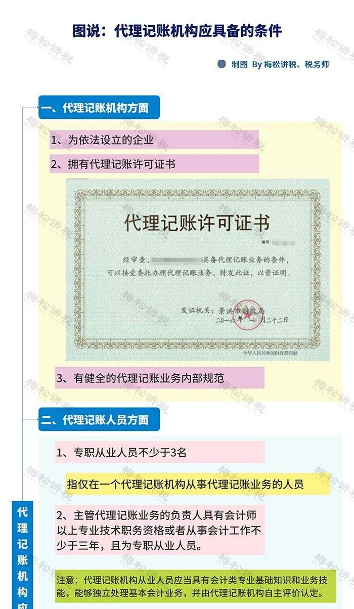 除了要求取得上述兩個證外, 對記賬人員、代理機(jī)構(gòu)內(nèi)部管理等都有要求,具體我們準(zhǔn)備了一張導(dǎo)圖,建議收藏: